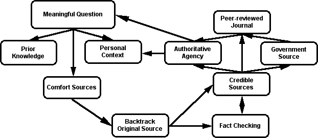 To be effective in a digital world, we must all become metacognitive explorers! The visual below represents Jamal's information inquiry process. Can you match the key points with his experience above? Can you match the key points with your own inquiry process? What are your comfort sources?