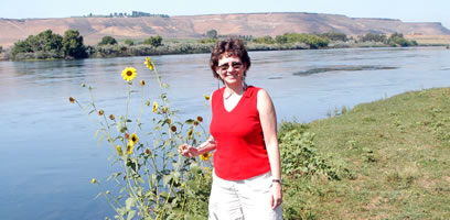 Late August 2003 After a great summer in Port Angeles, Washington it was time to head back east. We spend a few days traveling from Washington through Idaho to Salt Lake City Utah. As we were getting ready to leave, the global email virus hit. Luckily, Annette's mom agreed to handle the virus, so we could make our trip. We enjoyed the trip past Mt Rainier through wine country and along the Oregon Trail. We stopped to explore the Whitman National Historic Site as well as the Oregon Interpretive Center at the Three Island Crossing in Idaho (photo below).