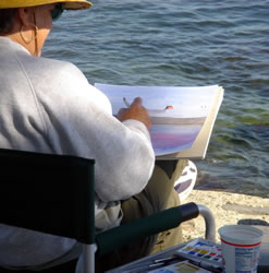 Art Show and Park Loop On a sunny, clear Sunday afternoon, we enjoyed an Art Show in downtown Bar Harbor. Exhibitor tents were full of paintings and photographs by a wide variety of artists. We particularly liked the work of a retired high school art teacher, Robert Drewell of Lewiston, Maine. After purchasing a beautiful watercolor painting of a rural country road in Maine, we browsed the weekly farmer's market. We bought fresh fruit and vegetables including tomatoes, plums, apples, and apple cider. Home-made lemon ice cream was our treat for the day.
