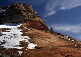 March 2004 We took a day trip to explore the area south of the Zion National Park. We wanted to explore the backroads areas and photograph the view of the park from the South. Smithsonian Butte Scenic Byway We started at the Zion River Resort campground in Virgin and took the Smithsonian Butte Scenic Byway (Photo below). Although it was a little wet in places, the road was good overall. We took Highway 59/389 past Hildale and Colorado City, then turned east on Cane Beds Road along the Rosy Canyon.