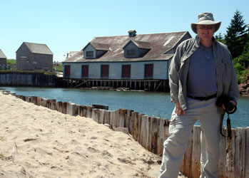 After logging our visit at the geocache, we discovered a quiet area of beach along the inlet. Larry photographed snails, lichen, and a wood seawall while Annette sketched. This pattern of photography and sketching was replayed all day. It was fun and relaxing. We decided that someday (nex trip here) we need to return and spend an entire day along this beach.