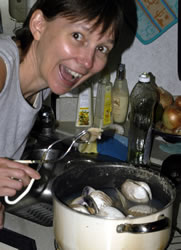 We enjoyed taking walks along the red beach at low tide. We could walk among the starfish, razor clams, and crabs. We met a father with this three children who were searching for quahogs, a type of clam. We had a nice conversation. The next day, the children came to our RV and gave us a bunch of quahogs to try. We steamed them on the grill. We learned a lot of different types of shellfish while we were in PEI. We can now tell the difference between a mussel, oyster, quahog, scallops, razor clams, and other shellfish. To learn more about cooking shellfish, go to The Cook's Thesaurus.