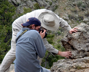 The rock formations were very interesting. While Larry and Ben did some photography, Annette sketched the landscape. Ben is becoming interested in photography, so Larry gave him some pointers. |