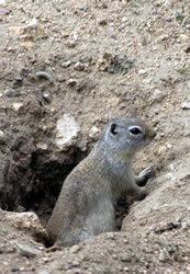 Coyote Prowling the Park Many afternoons, coyote could be seen walking the circuit through our RV park stalking tasty ground squirrels. Although they would occasionally look our way, they didn't seem to pay attention to all the motorhomes parked around them. They walked right by the utility hookups and picnic tables. |