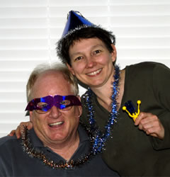 Alex has also become a little monster. He enjoys running around the house making "grr" sounds and attacking helpless family members. Annette and Alex spent lots of time playing monster. At one point he put on a New Year's Eve mask. It won't be long before he's playing "super hero." |