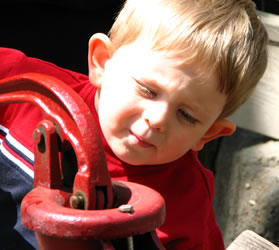 Water Pumps One of Alex's favorite activities is to watch how the water pump works. He was amazed every time the water came out of the bright red pump into the wood trough. |