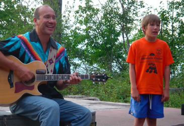 The second show was at the Apgar campground with the lake in the background. Jack's son sang one of the songs.
