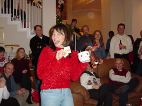 We hosted two holiday parties this year - one for SMU and one for TI. Here are a few photos from Arrion's SMU party. The SMU party included a white elephant gift exchange as seen below (several of my family members will recognize Linda Kao below showing off her white elephant gift.)
